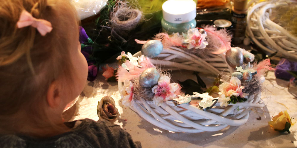 Wspaniała ozdoba, którą będzie można udekorować wielkanocny stół, okno lub powiesić na drzwiach do domu. Do dyspozycji uczestników warsztatów oddamy wiklinową bazę wianka (o średnicy 25 cm) oraz różnorodne materiały dekoracyjne: kolorowe jajeczka, wstążki, piórka i wiele innych.
