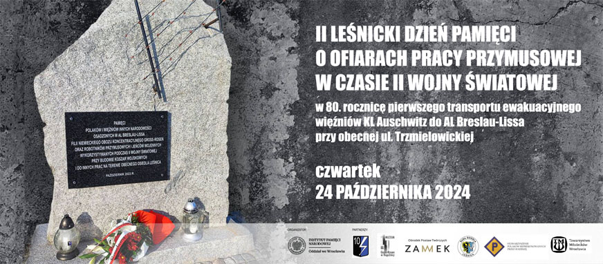 24 października 2023 roku przy ulicy Trzmielowickiej we Wrocławiu-Leśnicy odsłonięty został pomnik upamiętniający m.in. więźniów mieszczącej się w czasie wojny na tym osiedlu filii obozu koncentracyjnego Gross-Rosen oraz ofiary pracy przymusowej. W pierwszą rocznicę tego ważnego wydarzenia zapraszamy do udziału w II Leśnickim Dniu Pamięci.