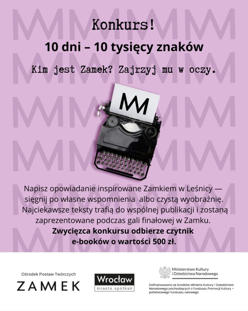 Masz lekkie pióro, głowę pełną historii i lubisz pisać? Jesteś z Wrocławia lub okolic? Weź udział w naszym konkursie literackim i opowiedz nam… kim jest Zamek w Leśnicy! Napisz krótkie opowiadanie inspirowane historią, duchem lub tajemnicą naszego Zamku. Maksymalnie 10 000 znaków.