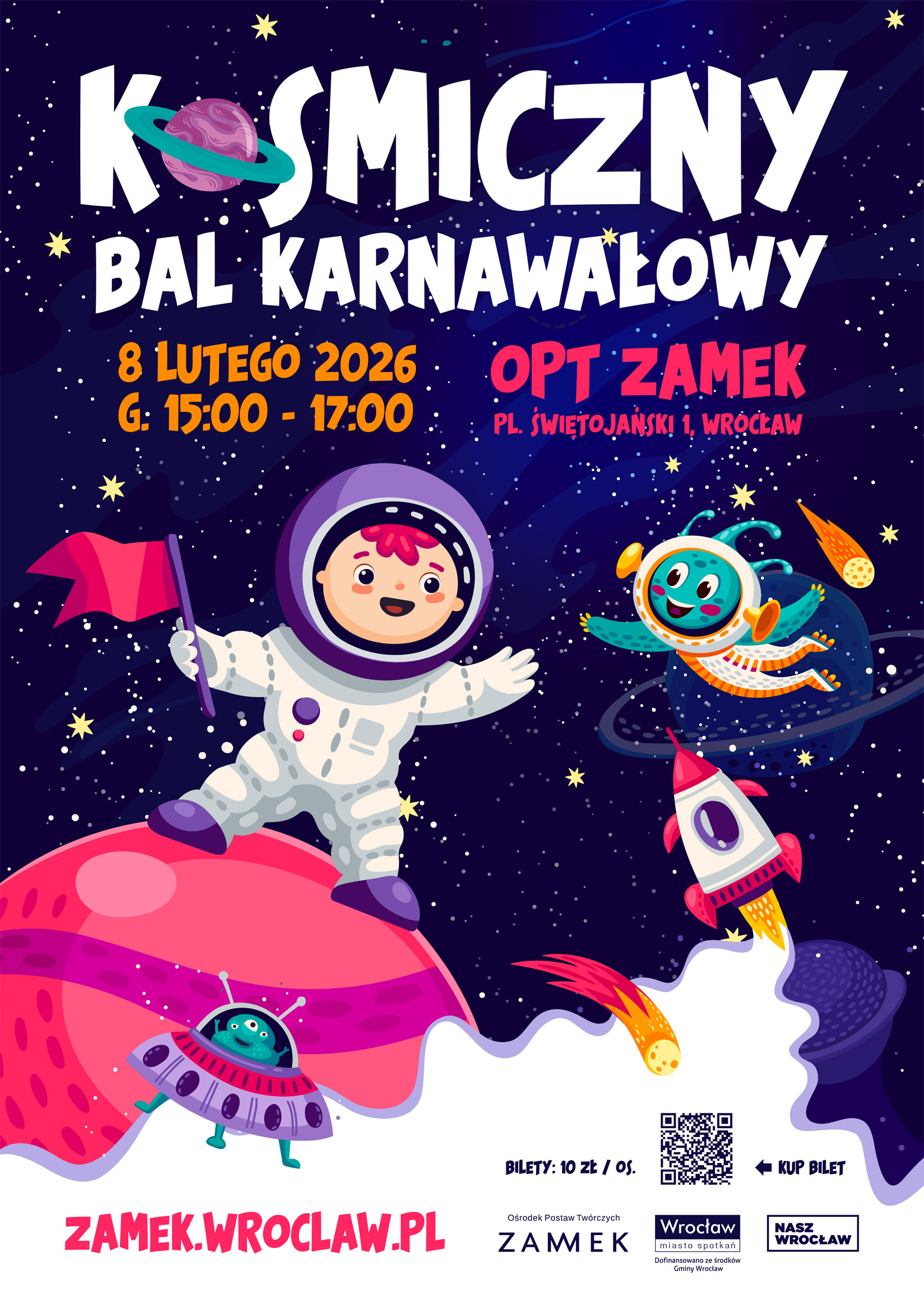 Przygotujcie skafandry, naoliwcie antenki i odliczajcie do startu! Już 8 lutego o godzinie 15:00 OPT Zamek zamieni się w międzygalaktyczną stację pełną radosnej energii. Zapraszamy wszystkie dzieci na niezapomniany Kosmiczny Bal Karnawałowy!