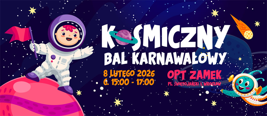 Przygotujcie skafandry, naoliwcie antenki i odliczajcie do startu! Już 8 lutego o godzinie 15:00 OPT Zamek zamieni się w międzygalaktyczną stację pełną radosnej energii. Zapraszamy wszystkie dzieci na niezapomniany Kosmiczny Bal Karnawałowy!