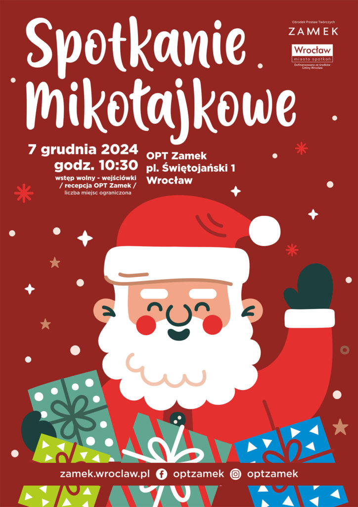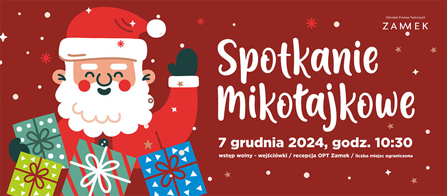 7 grudnia zapraszamy do OPT Zamek na spotkanie mikołajkowe! Spotykamy się w sobotę o godz. 10.30, by wspólnie świętować w mikołajkowej atmosferze. W programie 1.5h wydarzenia jest świąteczna opowieść oraz zabawa z animatorami.