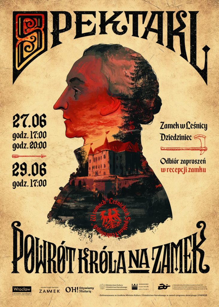 W ostatni weekend czerwca duch króla Fryderyka II Wielkiego nawiedzi Leśnicę w spektaklu “Powrót Króla na Zamek”. Będzie to wyjątkowa okazja, by odkryć, jak historia jednego z najwybitniejszych strategów Europy splotła się z dziejami Zamku w Leśnicy.