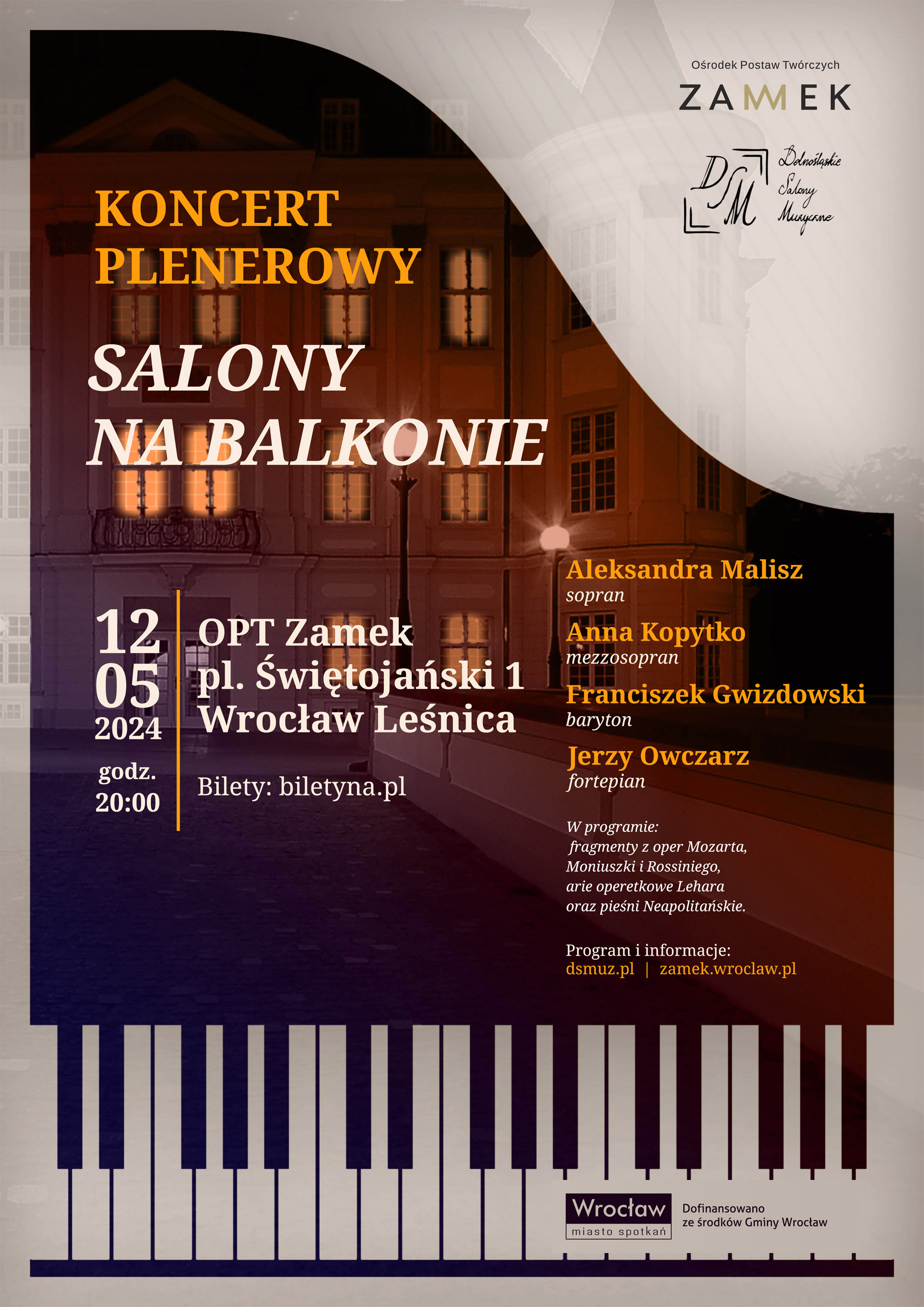 Co więcej, majowe wydarzenie nawiązuje do tradycji włączania w program arii i ansambli operowych. Z jednej strony prezentowano utwory ze standardowego repertuaru, z drugiej ulubione fragmenty najnowszych dzieł. Takie wydarzenia były więc nie tylko okazją do posłuchania znanych kompozycji, ale również do zapoznania się z nowinkami muzycznymi. 12 maja, w niedzielę o godz. 20:00 usłyszycie Państwo fragmenty z oper m.in. Moniuszki, Pucciniego i Mozarta. Oprócz regularnie występujących (Anna Kopytko – mezzosopran, Franciszek Gwizdowski – baryton, Jerzy Owczarz – fortepian) na scenie zaśpiewa Aleksandra Malisz – sopran. W razie niesprzyjających warunków pogodowych koncert zostanie przeniesiony do sali koncertowej. Serdecznie zapraszamy.