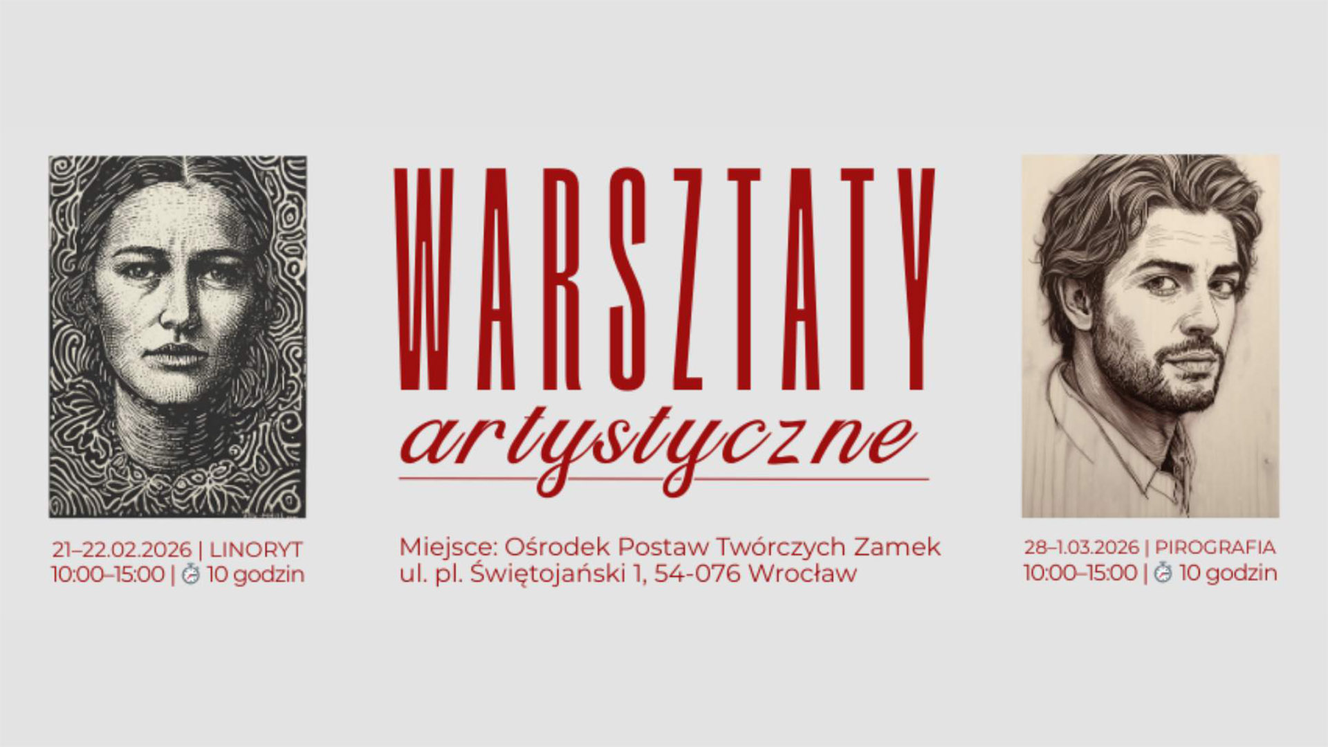 Warsztaty będą odbywać się w małych grupach (5-12 osób), co zapewnia kameralną atmosferę i możliwość pełnego zaangażowania w proces twórczy. Czas trwania każdego modułu to około 10 godzin, w trakcie których połączenie teorii z praktyką pozwoli na stworzenie unikalnych dzieł sztuki. Wszystkie materiały są zapewnione w cenie, a uczestnicy zabierają do domu gotowe prace, oprawione w ramki, które można zawiesić na ścianie. Zapewniamy również luźną atmosferę sprzyjającą twórczemu relaksowi, przekąski oraz ciepłe napoje. Warsztaty to doskonała okazja, by w praktyczny sposób poznać techniki takie jak linoryt czy pirografia, odkrywając nowe możliwości artystycznego wyrazu. Czas trwania warsztatów to ok. 10 godzin. Na miejscu będą dostępne przekąski.