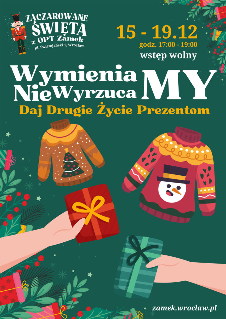 W erze nadmiernej konsumpcji i rosnącej świadomości ekologicznej, zapraszamy na wydarzenie, które idealnie wpisuje się w ducha zero waste i ideę gospodarki obiegu zamkniętego. Od 15 do 19 grudnia Zamek staje się centrum etycznej wymiany. Nasza akcja „WymieniaMY, Nie WyrzucaMY” to idealna okazja, by tchnąć drugie życie w przedmioty, które straciły dla nas wartość, ale mogą uszczęśliwić kogoś innego. To bezpośrednia odpowiedź na problem marnotrawstwa i świetny sposób na ekologiczne przygotowanie do Świąt.
