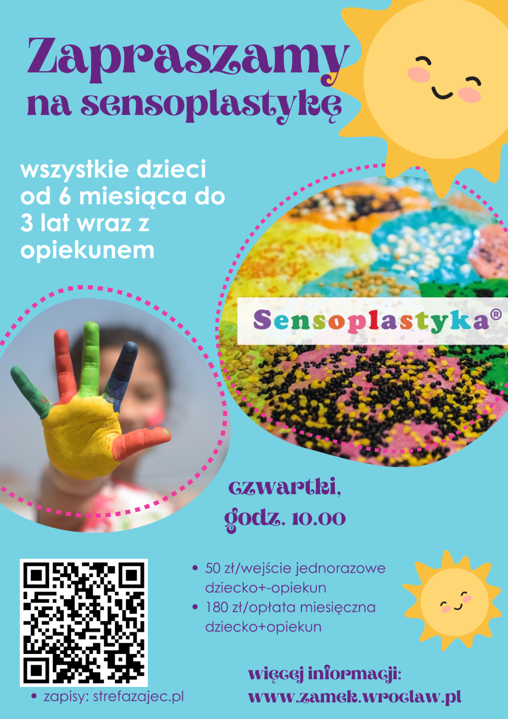 to podróż w krainę zmysłów oraz wolnego wyboru. To zajęcia na których zarówno dzieci jak i dorośli uwolnią twórczą energie. Na warsztatach wykorzystujemy materiały spożywcze o różnych strukturach i konsystencjach. Czujemy dotykiem, wąchamy i…brudzimy do woli. Rodzic i dziecko współtworzą zajęcia. Uczymy się wspólnie szanować swój wybór oraz stymulujemy sensorycznie wszystkie zmysły. Dziecko brudne to dziecko szczęśliwe! Metoda według których prowadzone są zajęcia została stworzona przez Izabelę Annę Stefańską. Osoba prowadząca – trener sensoplastyki Kalina Tomkowiak Kozak Płatność ze zniżką (20%) UrbanCard Premium wymaga okazania aktywnej karty w recepcji CK Zamek.